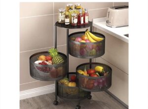 “Procuras maximizar o espaço sem abdicar do estilo? Este carrinho organizador com prateleiras giratórias é a solução definitiva para acabar com a desarrumação. Com um design moderno em preto e rodas 360°, adapta-se perfeitamente à cozinha, casa de banho ou até ao escritório. Robusto, prático e multifuncional: organiza frutas, produtos de higiene ou material de trabalho num piscar de olhos.”